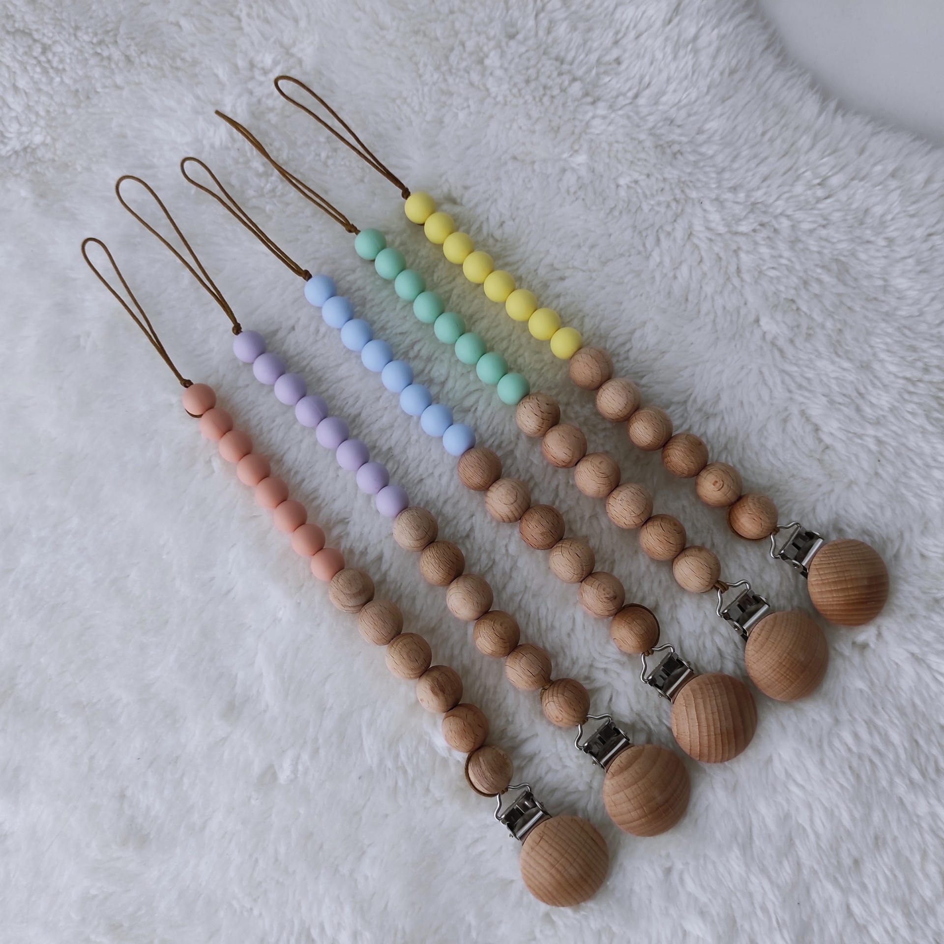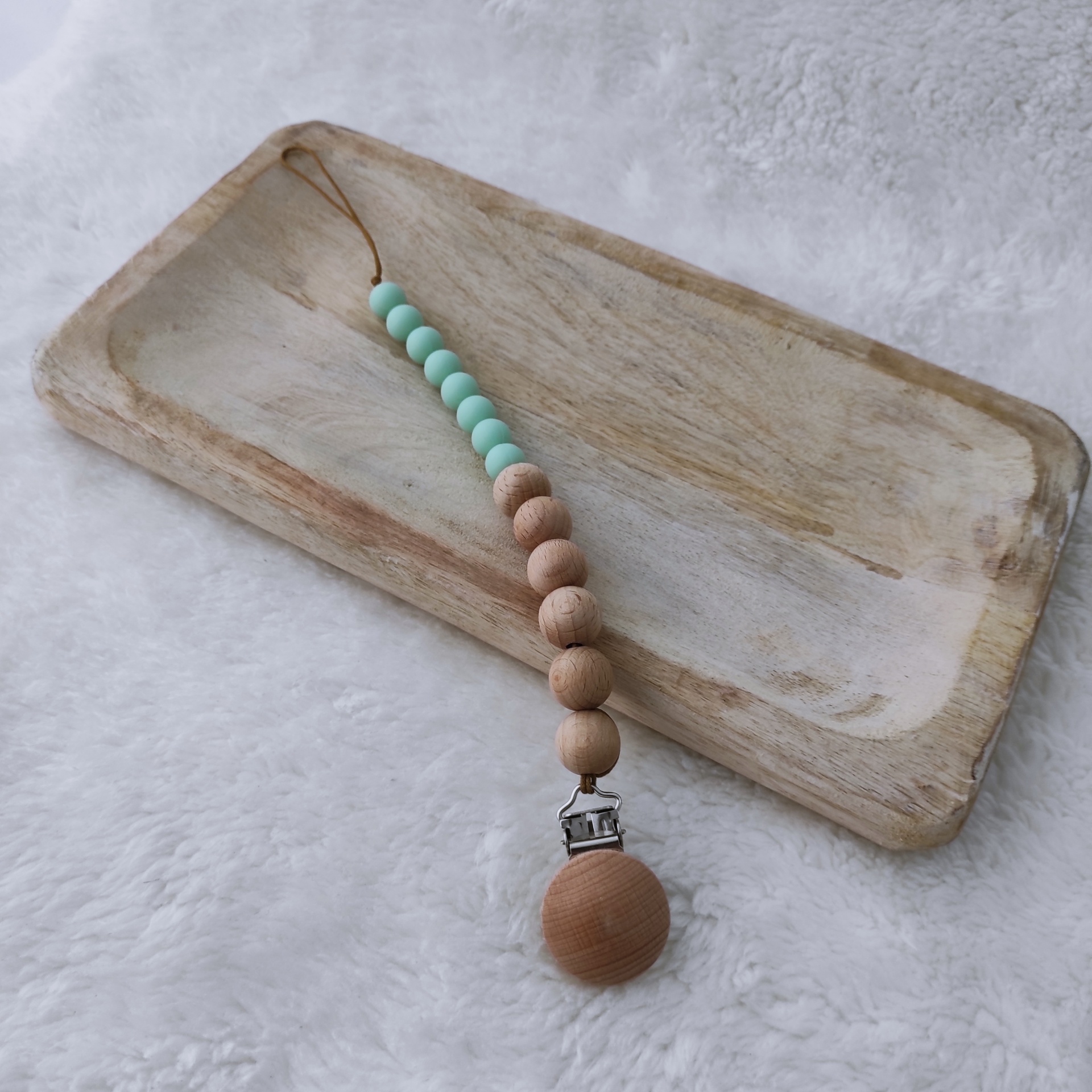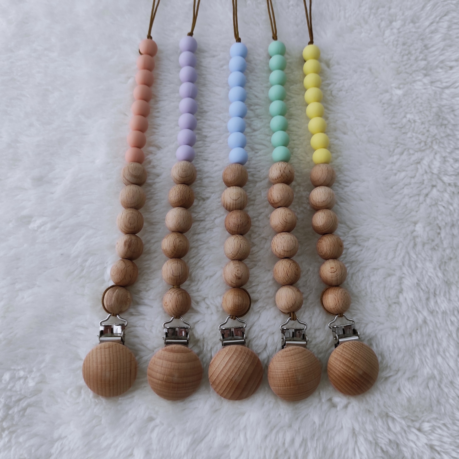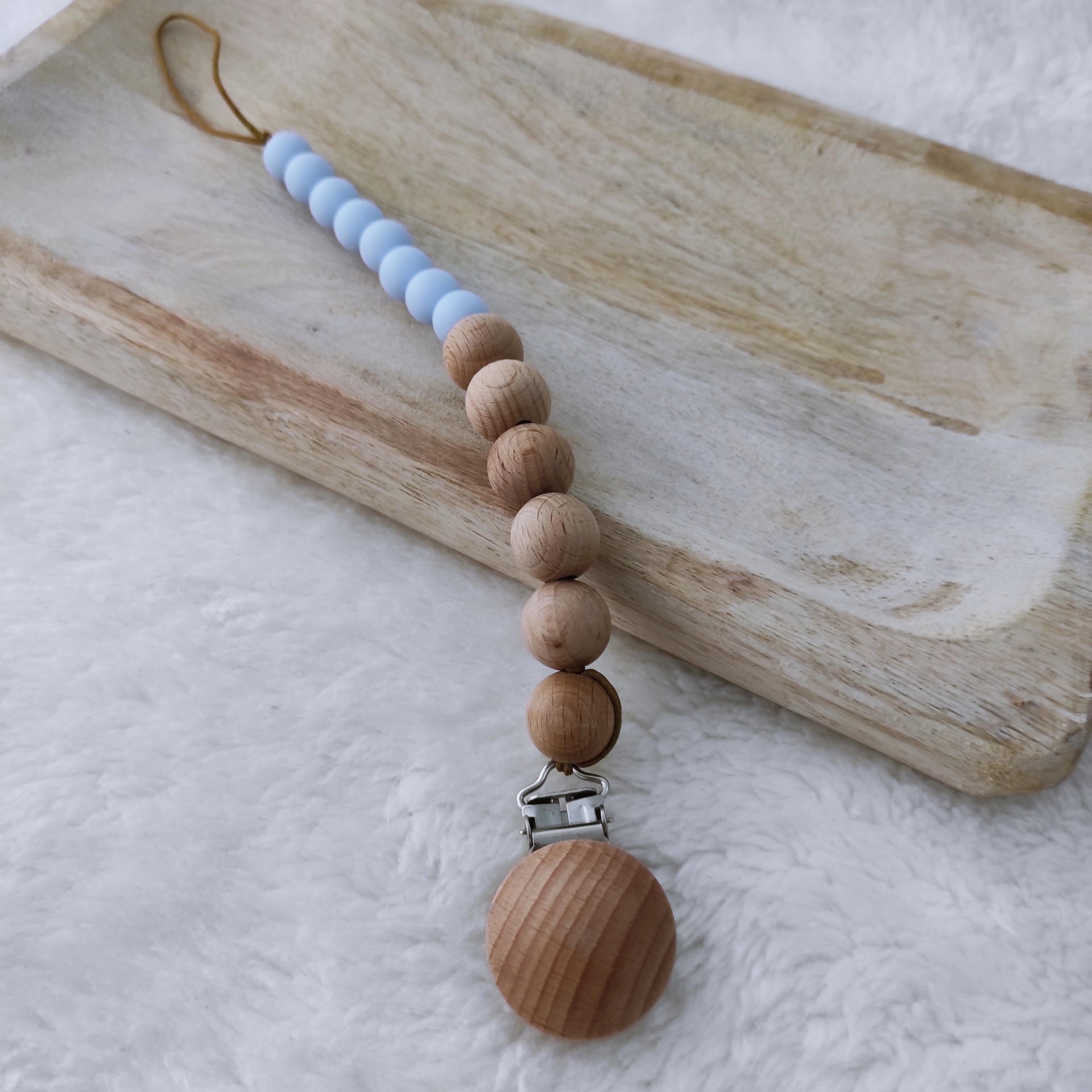 Prende-chupetas Anamar 7,00 € Desconto de %. Partilhar Cor Amarelo Azul Lilás Pêssego Verde Comprar Contactar SKU: PC989 Prende-chupetas em madeira natural e silicone. O bebé pode usar o prende-chupetas como mordedor, para o alívio do desconforto do nascer dos dentes. Cuidados Lavar à mão em água tépida. Deixar secar ao ar. Dimensões 23 cm Composição Madeira natural e silicone
