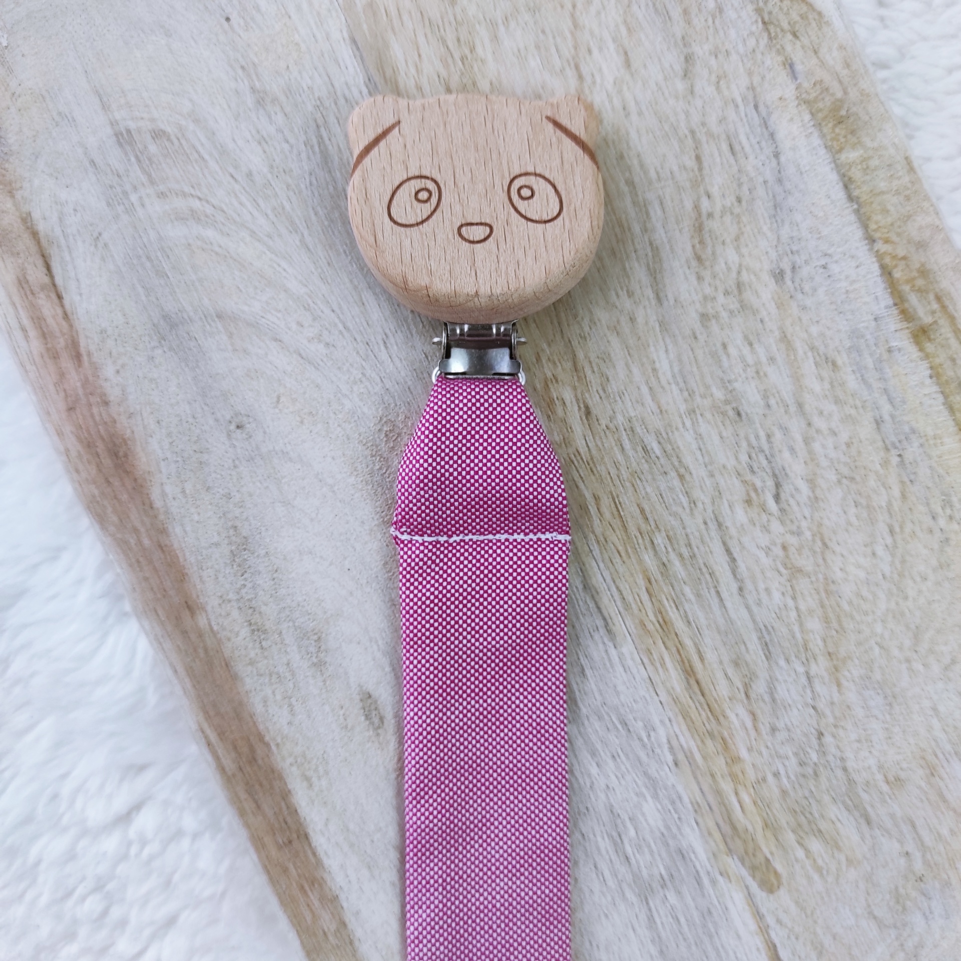 Prende-chupetas Pamella 7,00 € Desconto de %. Partilhar Cor Amarelo Azul Rosa Comprar Contactar SKU: PC015 Prende-chupetas com clipe em madeira natural em forma de panda. Cuidados Lavar à mão com detergente delicado. Não secar na máquina. Passar a ferro máx. 200ºC. Dimensões 28 cm Composição 100% algodão e madeira natural